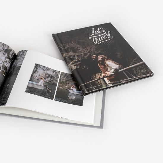 Álbum Press Vertical 23 x 28 cm tem capa dura e é impresso em papel couché de 170gr, sendo uma opção mais sustentável para imprimir as tuas fotos. Possui 2 guardas cinzentas e a impressão é Matte.