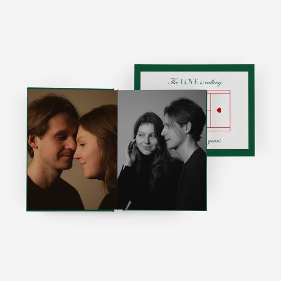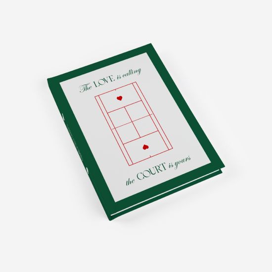 Inspirado na tendência Tennis Core desta temporada, o tema Love on the Grid transporta a estética preppy e desportiva diretamente para a capa das tuas memórias. Com o verde icónico do court, linhas minimalistas de jogo e um toque de elegância tipográfica, este design é o "match point" ideal para casais dinâmicos que encaram o amor como a melhor partida das suas vidas.
