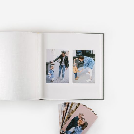 Os Álbuns Analógicos em Linho com janela estão disponíveis no formato 30x31cm. Este formato oferece um espaço muito interessante para organizar e preservar as tuas melhores recordações em fotos.