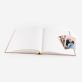 Os álbuns em Linho com janela possuem páginas preparadas para colares as tuas fotos com stickers.