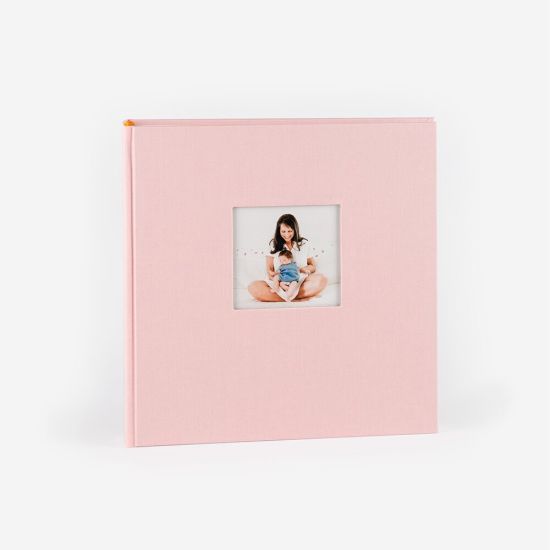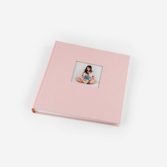 Este Álbum Analógico com janela apresenta uma capa em linho com uma janela para uma foto no formato 10x15cm. Está disponível em 5 cores: azul, bege, cinza, rosa e castanho.
