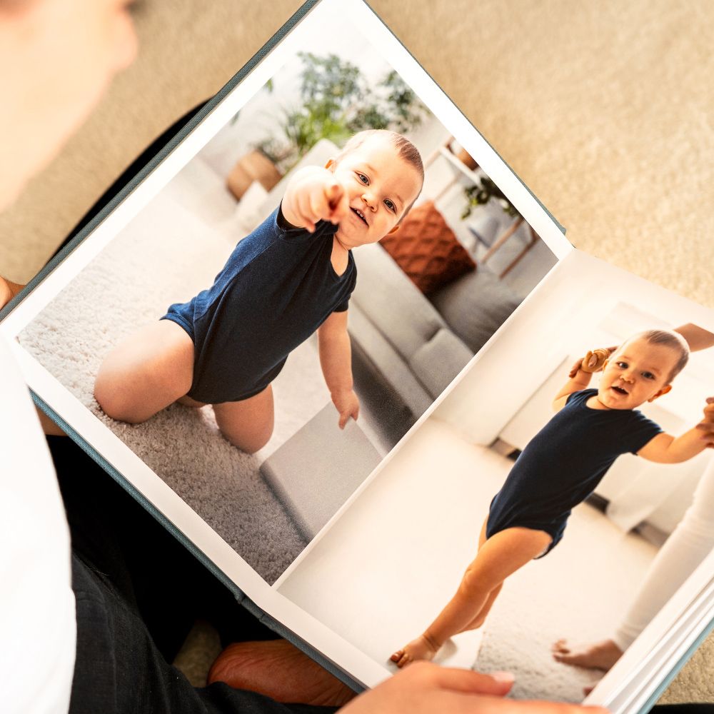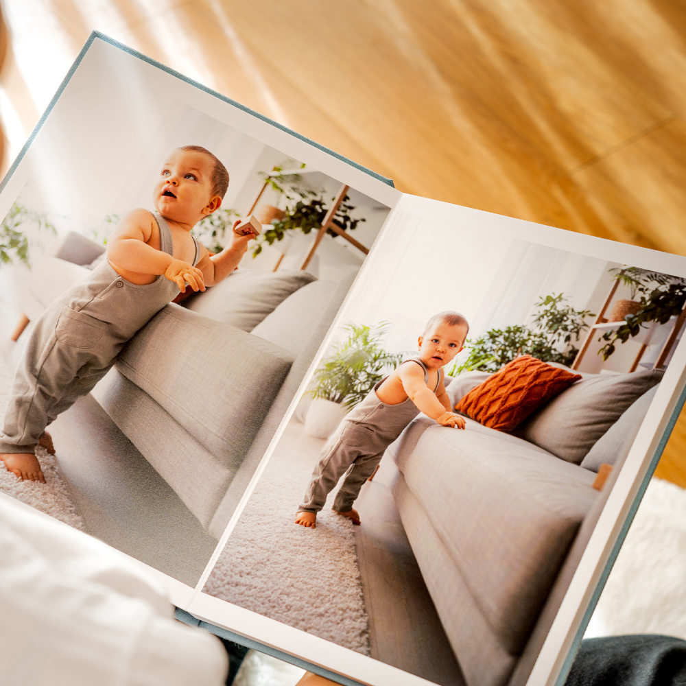 No modelo Cameo, a capa abre uma janela para a emoção. A tua fotografia favorita é integrada de forma permanente na capa em tecido, criando um leve relevo que a transforma no coração do álbum e num convite imediato para descobrir as memórias que guarda no interior.