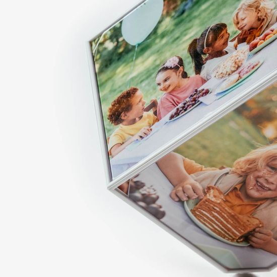 O Cubo Giratório com Fotos é em acrílico e tem capacidade para 6 fotos. Para o Cubo girar necessita de 2 pilhas AA (pilhas não estão incluídas). Oferta das Fotos na compra da moldura!