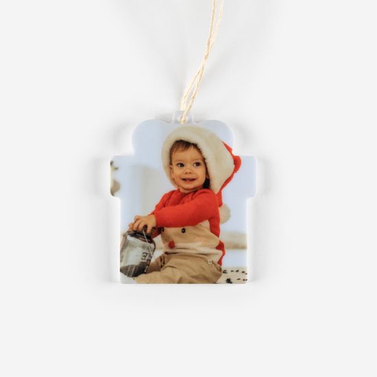 O enfeite de natal em forma de Presente é em acrílico, tem 8x8cm e inclui um cordel para pendurar na árvore de Natal. Podes personalizá-lo como quiseres, com uma foto, uma imagem ou um nome. A impressão é UV, garantindo alta qualidade e durabilidade.