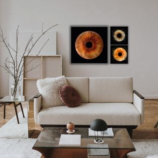 A tua íris pode ser impressa em vários materiais premium, como papel fotográfico, acrílicio ou alumínio.
