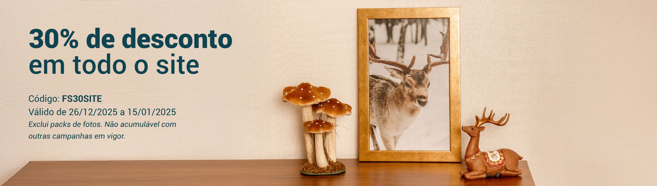 Promoção válida de 26/12/2025 a 15/01/2026 mediante a submissão do código FS30SITE. Não acumulável com outras promoções em vigor. Exclui packs de fotos.