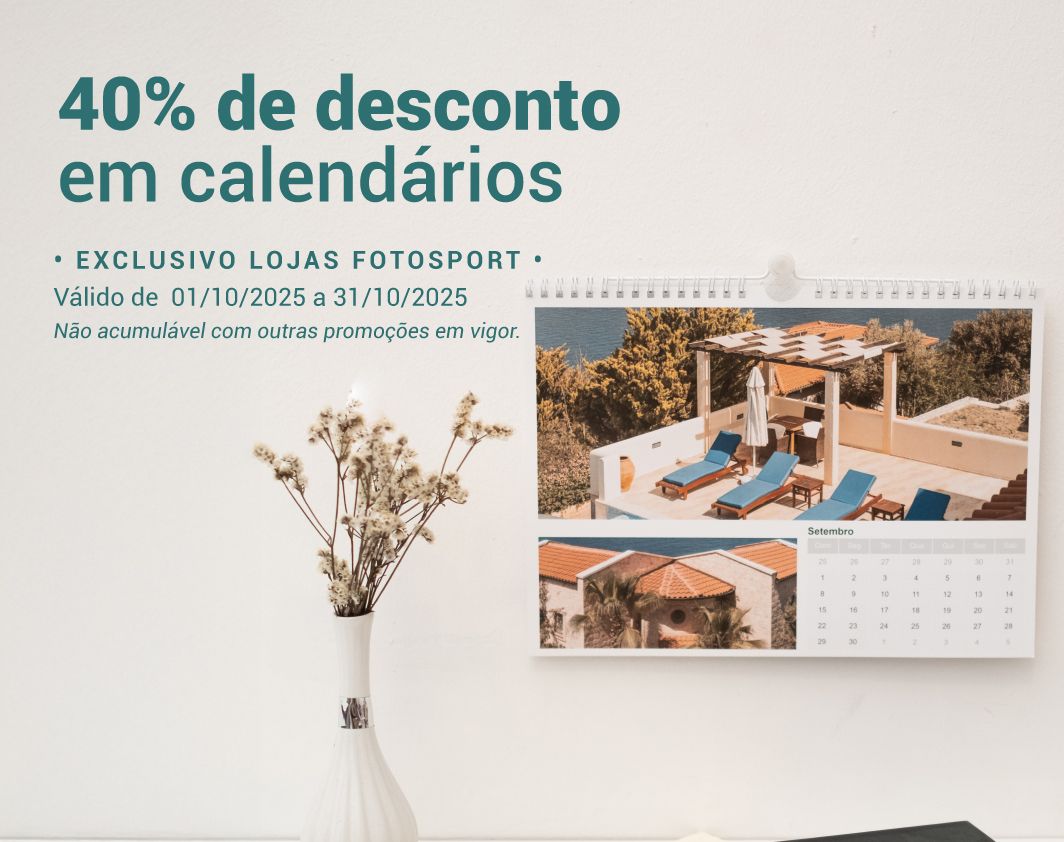 Promoção exclusiva lojas Fotosport aderentes, válida de 01/10/2025 a 31/10/2025 em formatos selecionados. Não acumulável com outras promoções em vigor. Salvo rutura de stock.